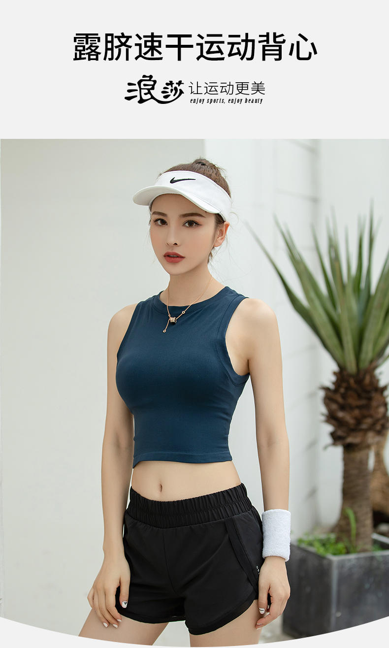 浪莎運動背心女緊身露臍無袖跑步瑜伽服上衣罩衫薄款健身速干T恤